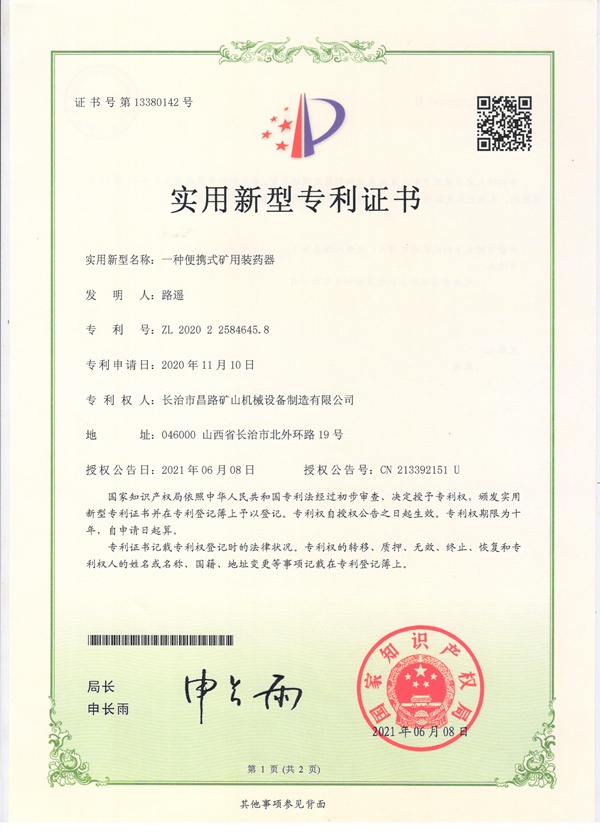 1、我公司為專業(yè)裝藥器制造廠家,公司產(chǎn)品獲得國(guó)家專利。